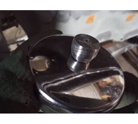 Факел не вертикальный. Для правильной работы пришлось наклонять бабочку. Бачок сделан очень экономно, из двух половин и сварен. Крышка неудобная. Пришлось доробатывать. Чтобы крышка сидела плотнее, раскатал край. Сделал ручку для открывания.