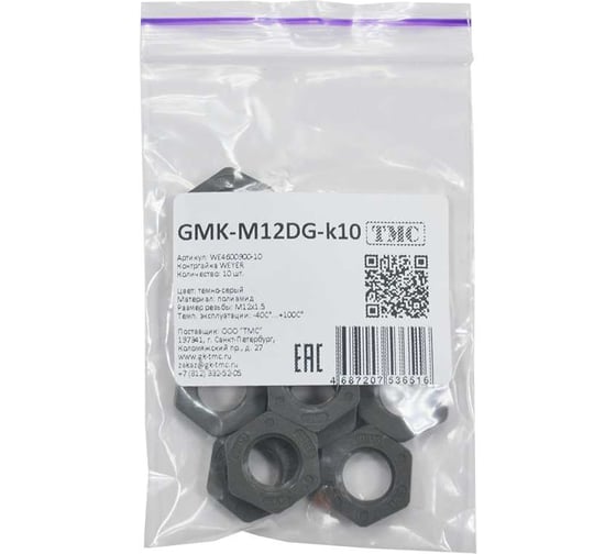 Крепеж для гофрированных труб Weyer GMK-M12DG-k10 контргайка, цвет темно-серый, внутр. M12х1.5, комплект-10 шт. WE4600900-10