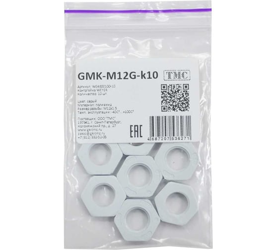 Крепеж для гофрированных труб Weyer GMK-M12G-k10 контргайка, цвет серый, внутр. M12х1.5, комплект-10 шт. WE4600100-10
