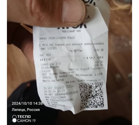 08.11.2024г. ЛипецкОпыт использования: Менее месяца