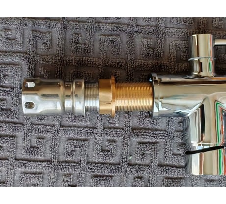 Отличное крепление, хорошо сделано. Металл достаточный толщины. Сделано аккуратно. Проблема была в толщине столешницы и мойки - она совпадала с длинной крепления. Найти удлинённый вариант не смог. Это крепление для смесителя по габаритным размерам такое же как и то что идёт в комплекте с краном. Купил гайку и забил её с нижней стороны столешницы. Подходящяя гайка "Код товара: 27302682" Длинна крепления с резьбой 60мм Диаметр по резьбе 31,5 мм. Длинна гайки по самой широкой части 45мм длинна 61мм .