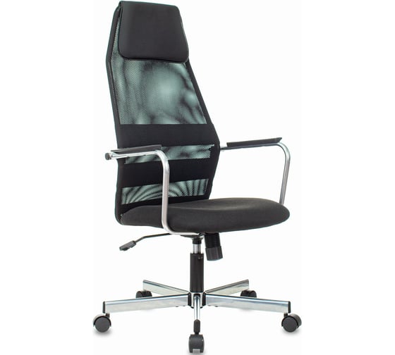 Кресло Бюрократ KB-5M черный TW-01 3C11 сетка/ткань, с подголовником, крестовина металл, серебристый 1739950
