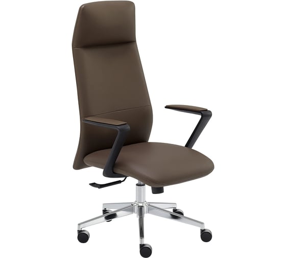 Кресло обладает прочным хромированным основанием, гарантирующим устойчивость и долговечность. Каждая деталь продумана для создания атмосферы премиального комфорта, делая эту модель идеальным выбором для руководителей, ценящих исключительное качество, солидный внешний вид и заботу о здоровье в течение всего рабочего дня. Представлено в черном и коричневом цвете.