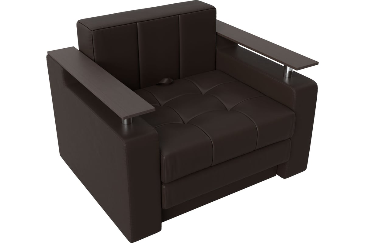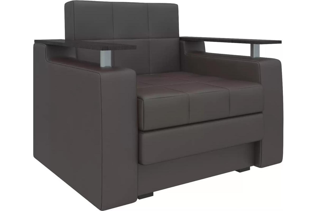 Мираж - кресло-кровать с бельевым ящиком, выполненное в оригинальном английском стиле, с объемным рисунком на спинке и сиденье. Высокие деревянные подлокотники дополнены деревянными столешницами, выполняющими роль небольших столиков. Конструкция раскладывается в удобную односпальную кровать.