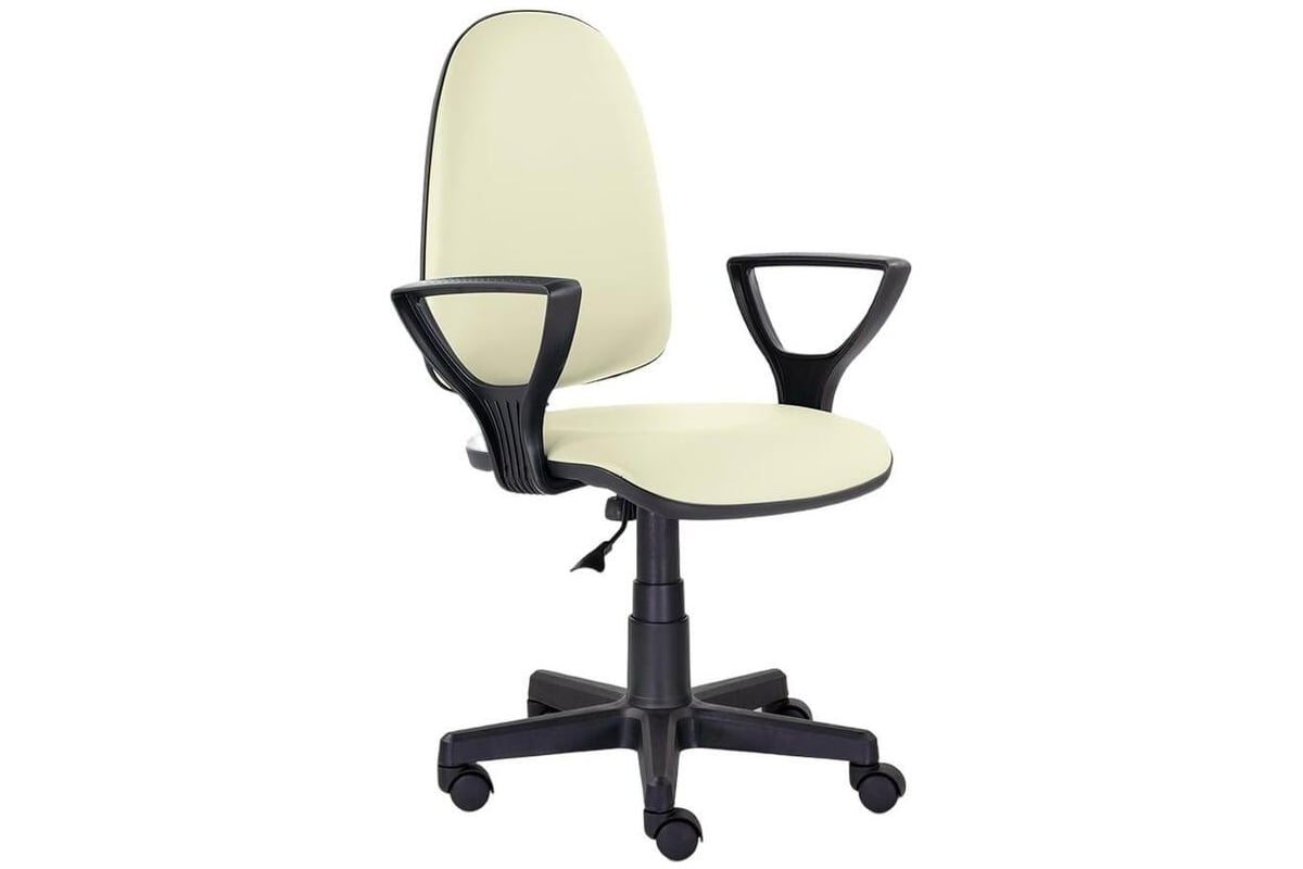 Кресло офисное предназначено для ежедневной работы сидя, может быть установлено как в офисных, так и в домашних помещениях. Комплектация подлокотниками Гольф. Пятилучье пластиковое d=580 мм с 5-тью роликами. Материал чехлов спинки и сиденья, чехла газ-лифта, подлокотников, пятилучья - пластик (полипропилен).