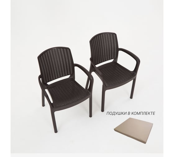 Кресло садовое WORKY RODOS искусственный ротанг, венге, 2 шт., с бежевыми подушками ARD260424