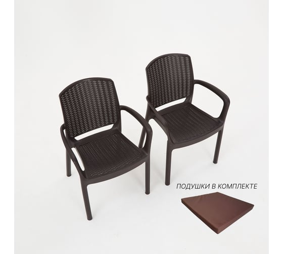 Кресло садовое WORKY RODOS искусственный ротанг, венге, 2 шт., с коричневыми подушками ARD260425