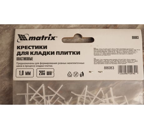 Отзывы о крестиках (200 шт; 1 мм) для кладки плитки MATRIX 88083