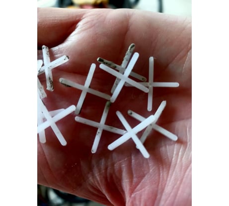 Крестики для кафельной плитки обеспечивают одинаковую ширину шва. Имеют небольшой вес и не доставляют затруднений при использовании. Вставляются между плиткой со всех сторон, создавая необходимый зазор одинаковой толщины для образования затирочного шва.