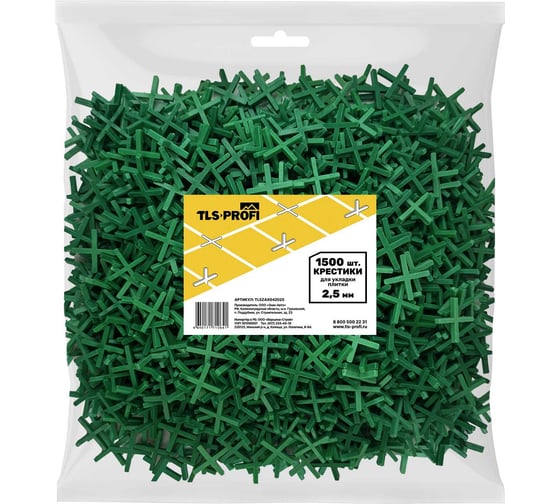 Крестики для плитки TLS-Profi 2,5 мм — профессиональное решение для создания ровных и устойчивых швов при укладке керамической плитки. Этот размер является оптимальным для напольной укладки и служит идеальным переходом между стандартными размерами для стен и специализированными решениями для пола.