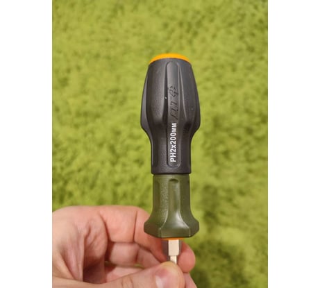 Прорезиненная рукоять, намагниченность, разный цвет у разных отверток, жало под ключ на 6, утолщение на 10.