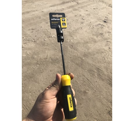 Брал для гаража. Метал черный матовый хром. Наконеник магнитный, так ещё и с алмазным напылением. Магнитной силы хватает что бы без проблем удержать несколько саморезов. Качество ручки очень высокое, заусенцев нет, отлита идиально, метал в ручке сидит отлично, ничего не болтается не шатается. Шрифты которые нанесены на металл хорошо читаются. Яркие жёлтые встаки хорошо выделяют её из рабочего бордака. Брал за 75Р по акции, своих денег точно стоит. Стоила бы дороже всё равно бы купил. Чувствуется что держишь профессиональную качественную вещь!