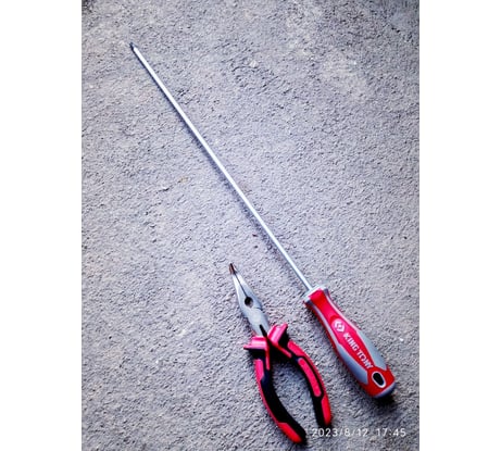 Длинная отвёртка с хорошей удобной ручкой. Но всё портит металлический сплав, из которого она сделана.