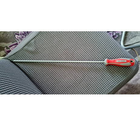 Длинная отвёртка с хорошей удобной ручкой. Но всё портит металлический сплав, из которого она сделана.