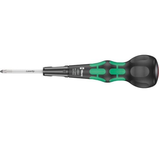 Отвёртка с ручкой Kraftform серии 1800 для крепежа Phillips. Ручка отлично держится в ладони. Шаровидная форма хорошо передаёт большой момент силы. Мягкие участки ручки служат для надёжного контакта с максимально возможной передачей усилия. Твёрдые участки обеспечивают передачу значительного усилия, даже если нажим осуществляется подушечками ладони. Выемки под пальцы на верхнем конце ручки облегчают выполнение точных юстировочных работ. Благодаря зауженному переходу с ручки на рабочий конец отвёртки она хорошо подходит для работы с труднодоступным и глубоко посаженным крепежом в узком пространстве. Защита от перекатывания на другом конце ручки затрудняет надоедливое перекатывание инструмента на рабочем месте. Наконечник Lasertip отверток Wera обработан лазером до получения микроскопической шероховатости. Такая поверхность буквально "вгрызается" в головку винта. О непроизвольном выскальзывании отвёртки из крепежа можно забыть.