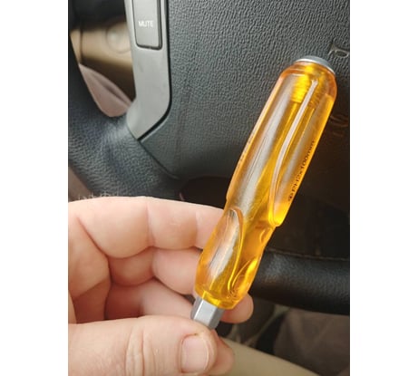 Можно бить по нему молотком, можно крутить рожковым ключом, магнитящийся наконечник. Прозрачная ручка, видно конструкцию отвёртки.