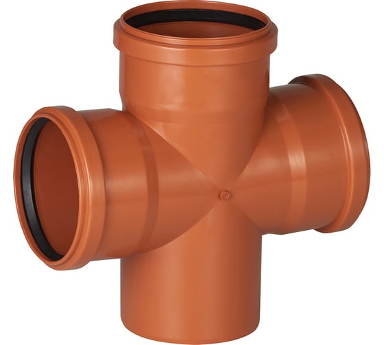 Крестовина для систем наружной канализации используется при монтаже двух ответвлений от основной канализационной трубы.