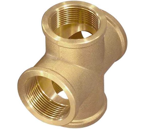 Крестовина резьбовая латунная ViEiR 1/2Г × 1/2Г × 1/2Г × 1/2Г (все стороны гайка, внутренняя резьба) для сантехнических соединений и трубопроводов XF333