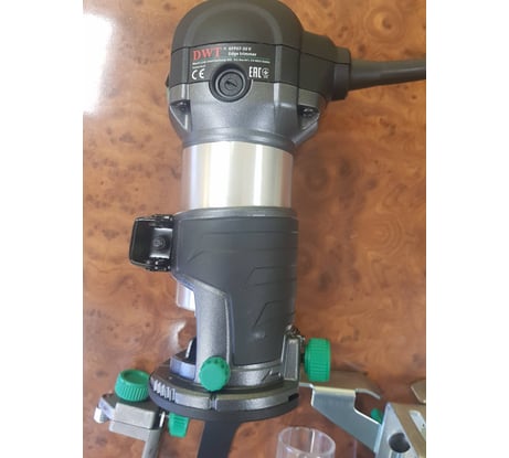 Хорошая копия известного японского бренда M…ta. Качество сборки и материалов очень хорошее (на уровне японца, без облоев, люфтов, зазоров, кривизны и т.п. как на пластике, так и на металле. Плавный пуск не работает, старт у него с рывком, при чем очень ощутимым! Плавный пуск срабатывает уже тогда, когда фрезер набрал практически полные обороты и смысла в плавном пуске уже нет. Поддержка оборотов тоже практически не ощущается, срабатывает через раз и при очень сильной нагрузке на сам фрезер. Так что если расчитывать на стабилизацию оборотов и постоянно сильно нагружать фрезер, то мотора на долго может не хватить. Если кто хочет нормальный плавный пуск и поддержку оборотов, то отдельно можно купить блок электроники от m…ta, только стоит он как этот фрезер!!!!Отдельно порадовали подшипники, их вообще не слышно и вибрации абсолютно нет никакой! Шпиндель тоже ровный и родные цанги фиксируют очень хорошо фрезу. В комплекте есть цанговый конус на 8 мм. Не смотря на его небольшую длинну, фиксирует очень хорошо и без перекосов (такой же конус и у m…ta идет в комплекте). Ключ из коробки как обычно из мягкого и тонго железа, но с учетом того, что затяжка цанговой гайки на 99% делается руками (проверял сам, ключем хорошим полсле затяжки рукой можно сделать только 1/16 оборота и то в этом нет необходимости, т.к. усилие на ключ большое прикладывать нет необходимости) то этого ключа вполне достаточно. Кабель отличного качества, очень мягкий. Длинны его вполне достаточно для нормальной работы. Глубина погружения всего 20мм. Шестерни хватит и на 30 мм, но прийдется стачивать ограничитель в основании фрезера, а он помимо глубины погружения еще работает как направляющая для погружения и без него фрезер будет проворачиваться в основании и как следствие шестерню будет закусывать постоянно. Упор сделан из 3-х мм стали и достаточно жесткий. Копировальный ролик из литья, из коробки сам ролик люфтит, можно его просто затянуть сильнее, а в идеале поменять ролик на подшипник. Фрезер брал только по причине того, что за такие деньги в нем заявлен плавный пуск и поддержка оборотов, а по факту можно сказать их нет, то после покупке хотел сдать его обратно, но посмотрев отзывы на другие аналоги это m…ta (более дешевые) чем dwt, а так же на качество сборки и работу кнопок, кабели, бьющие шпиндели кривые подошвы смотрел не на фото, а в магазинах в живую) решил оставить этот фрезер. Посмотрим на долго ли его хватит! P.S. По поводу расхождения в характеристиках в описании и по факту (глубина погружения, плавный пуск и поддержка оборотов) к ВИ.ру претензий нет никаких, эти же характеристики указаны и на сайте производителя. С учетом качества сборки и материалов этот фрезер стоит своих денег, т.к. если хотите чтоб все работало, берите оригинал от m…ta, который будет стоить около 15к!!! И не факт что он будет собран не на том же заводе в Китае, что и этот фрезер
