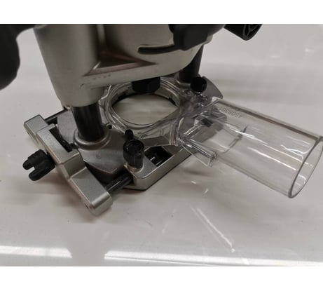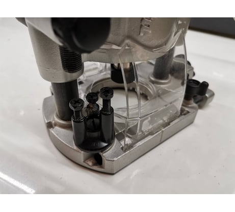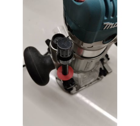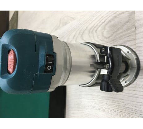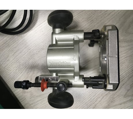 Ущербная псевдо-цанга на D6 и самый настоящий плевок-втулка конусная высотой 9 мм с разрезом для фрез с посадочным диаметром 8 мм. Общественное мнение сошлось на том, что данный девайс был спроектирован исключительно для любительского (хобби) сегмента рынка и был рассчитан исключительно на фрезы с хвостовиками D6, а конусную втулку для D8 добавили гораздо позже, и уже не инженеры, а менеджеры по рекламе - за пару центов увеличили отпускную цену вдвое. И поскольку пипл хавает это уже 10 лет, то Маките не было и нет никакого смысла напрягаться с разработкой даже односторонней псевдо-цанги на D8. (Интересующиеся могут зайти в любой магазин, попросить что-нибудь типа Makita 3612C и посмотреть - как именно должна выглядеть настоящая цанга для фрез). Неплоские пластиковые подошвы у всех трёх баз. Отсутствует подсветка рабочей зоны. Детали корпуса внешне выполнены очень качественно, но при сборке был допущен перекос. Фиксатор вала гарантирует наивному пользователю, слепо соблюдающему хитрое Руководство, совсем негарантийный ремонт после появления трещин на хрупком дюралюминиевом корпусе. Вместо столь необходимой всему прогрессивному человечеству шкалы в вершках, пядях или локтях на корпусе выгравированы чуждые и нашему да и великому казахскому народу заокеанские ины. Два стальных гаечных ключа из толщиной 3 мм, малый - с размером 13,2 мм оставляет глубокие вмятины на проточках (12,85 мм) вала, выполненного из чего-то по своей твёрдости скорее напоминающего пластилин, что вполне допустимо для БЫТОВОГО инструмента НАЧАЛЬНОГО уровня. На фото видны следы после всего четырёх установок-снятий фрез.