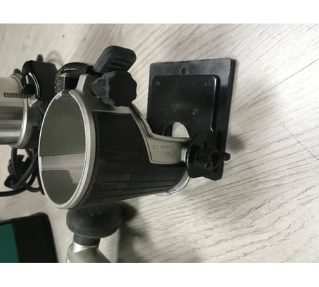Копеешный универсальный набор для знакомства с хобби-фрезеровкой дерева и пластиков с довольно терпимым люфтом погружной базы, а царская скидка в ажно три рубля не оставила жабе никаких шансов. На погружной базе смонтирован одноразовый защитный щиток-отбойник вылетающих из дешёвого ненадёжного патрона фрез-убийц. Сетевой провод 2х1 кв.мм в резиновой изоляции длиной 3,98 м свёрнут в большое европейское кольцо вместо уже набивших оскомину китайских идиотских гармошечных червячков, удобные обрезиненные ручки и корпуса баз.