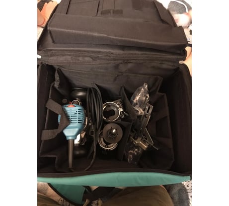 На мой взгляд илеальный фрезер. Брал вместе с сумкой. Сумка вместилельная, в неёубирается всё + остаётся место. Места хватает для электролобзика.