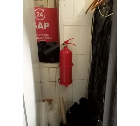 Хороший кронштейн главное что металлический, я покупал под огнетушитель диаметром 135 мм, покрашен хорошо пока монтировал краска нигде не отвалилась, особенно учитывая то что я крепил на плитку и приходилось сверлить дополнительное отверстие чтобы попасть шов
