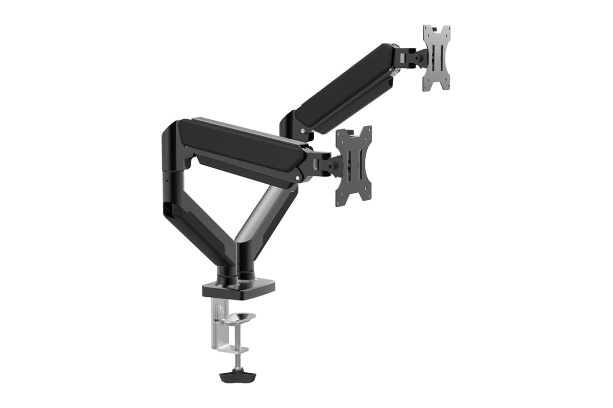 Настольный кронштейн для двух мониторов с технологией газлифт. Подходит для мониторов и телевизоров с диагональю от 13 до 32" и весом 9 кг. Механизм с газовым амортизатором позволит легко управлять размещением мониторов на рабочем столе. Настольное крепление 2-х видов и встроенный кабель канал. Стильное и практичное решение для организации рабочего места.