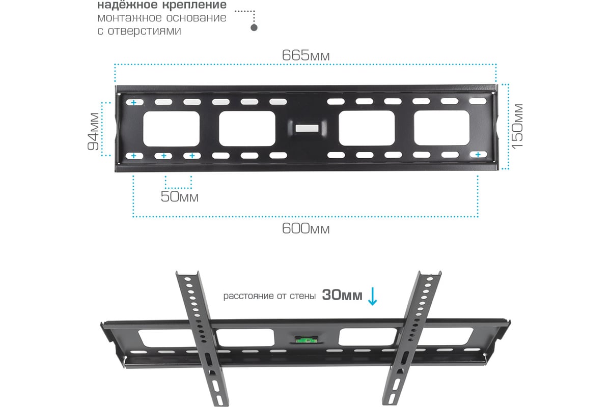 Кронштейн для LED/LCD телевизоров TUAREX OLIMP-411 black 90176 - настенный фиксированный кронштейн для телевизоров с диагональю от 32 до 70 дюймов. Кронштейн Tuarex Olimp-411 позволяет располагать телевизор на расстоянии от стены 30мм.