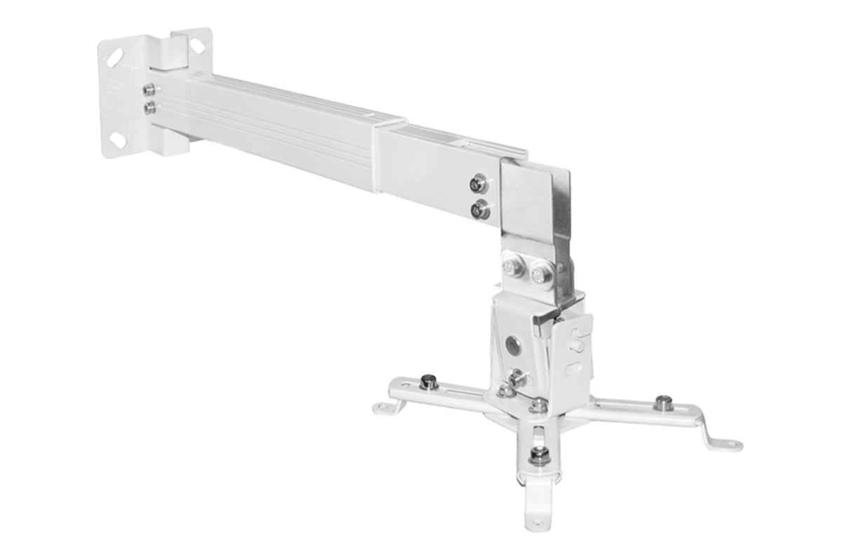 Современный кронштейн в стильном белом цвете, для установки проектора в практически любом помещении. Помимо прочной конструкции, выдерживающей нагрузку в 20 кг, есть отличная возможность крепежа кронштейна не только на потолок, но и на стену, так сказать два в одном, по цене одного. Кронштейн отличается отличной маневренностью, есть дополнительная штанга, с ее помощью можно опускать от потолка значительно ноже, чем без штанги. Можно комфортно осуществлять наклоны вниз, и вверх, легко изменять угол поворота, тем самим обеспечить комфортный просмотр. Я считаю что покупка этого кронштейна удачная, я довольна.