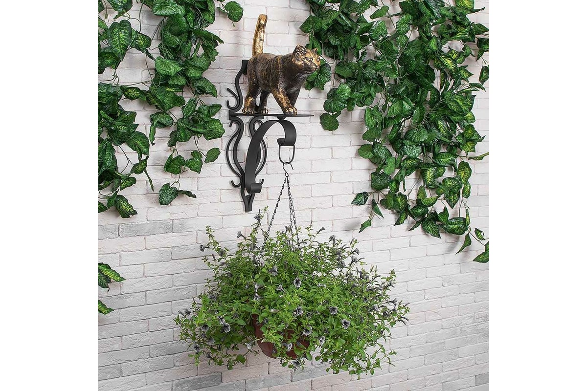 Кронштейн для цветов BOGACHO Кот Welcome 77056/бронзовый станет настоящим украшением вашей входной группы.