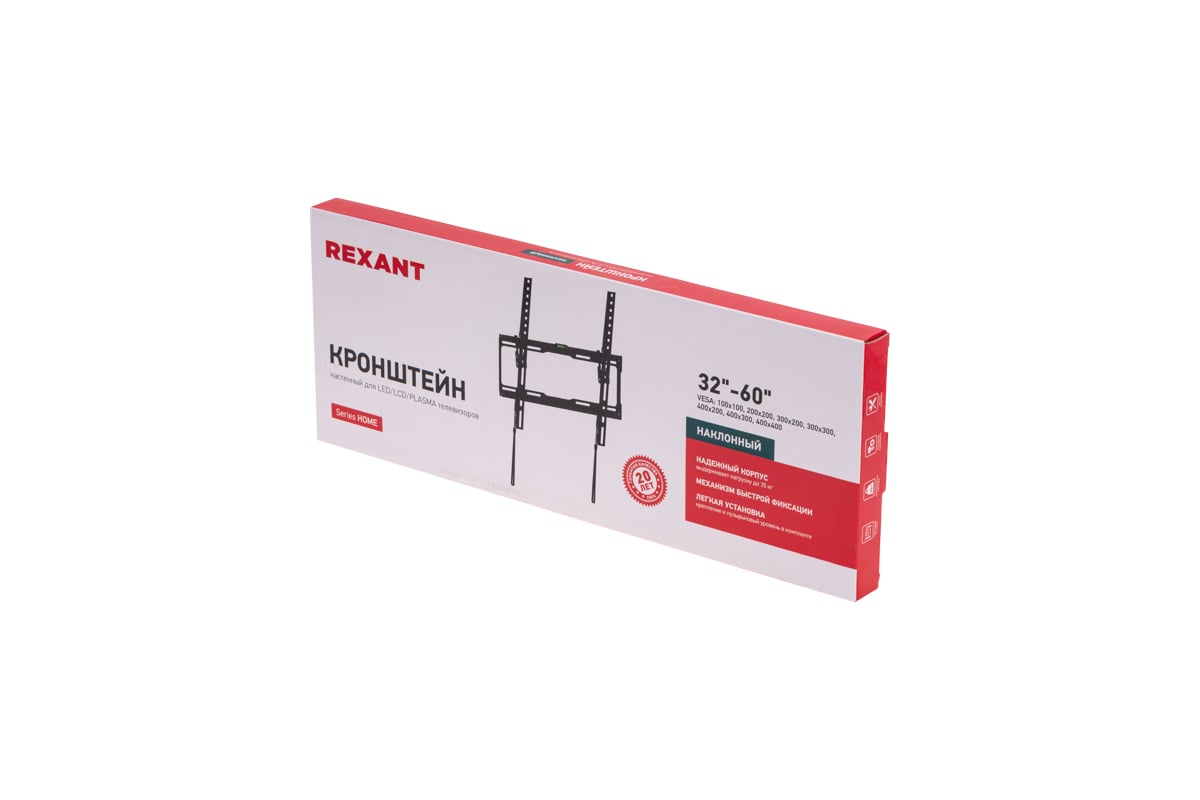 Наклонный кронштейн REXANT для телевизора 32"- 65" с быстрой фиксацией, серия HOME 38-0312