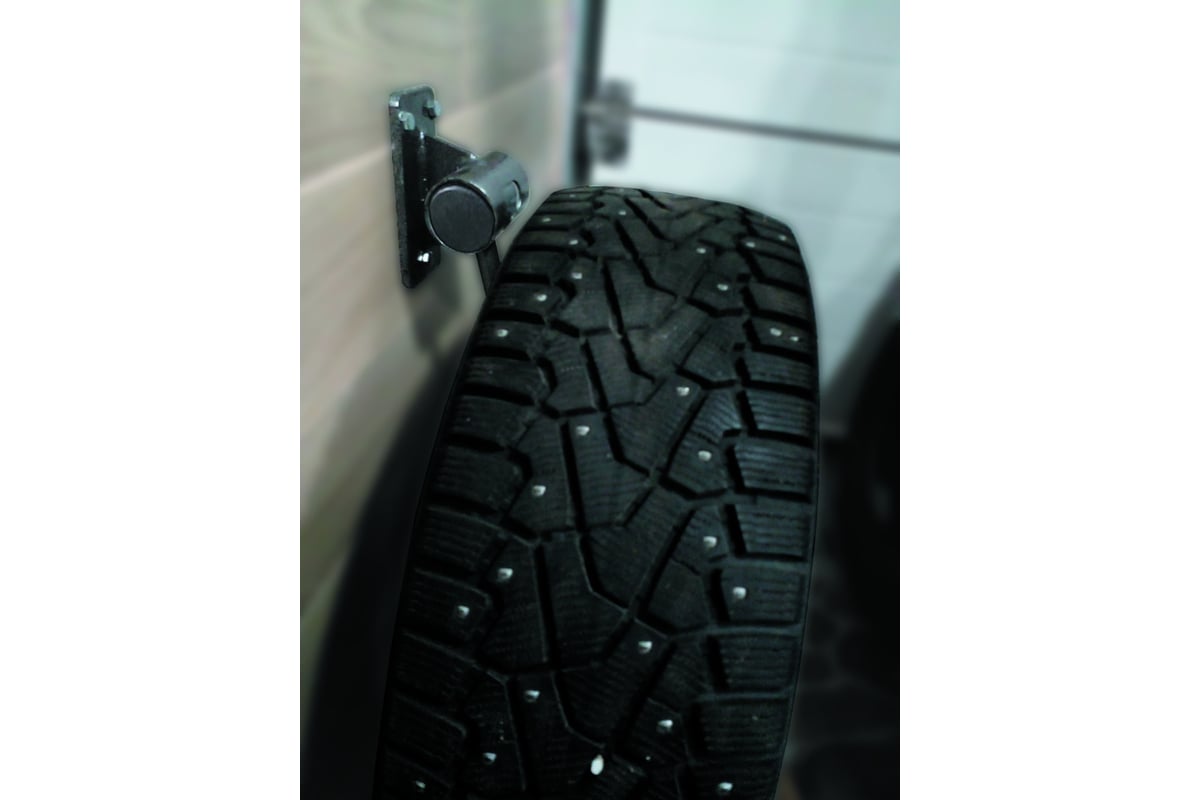 Двухпозиционный кронштейн для хранения шин устанавливается по размеру колес так, чтобы крепление кронштейна находилось строго на 2/3 над поверхностью шины. Для хранения колес с дисками кронштейн необходимо установить по размеру колес так, чтобы крепление кронштейна находилось строго на 5 см ниже поверхности шины.