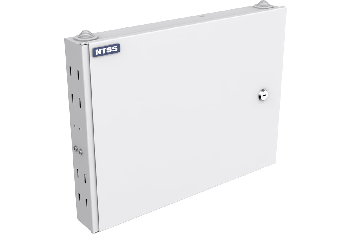 Кросс оптический настенный предназначен для оконцовки оптического кабеля и коммутации с внешними устройствами через оптические адаптеры. Кросс оптический NTSS-WFOB предназначен для монтажа на стену. Настенные оптические кроссы под планки изготавливаются трёх размеров, до 16 портов - под 2 планки по 8 портов, до 48 портов - под 2 планки по 24 порта или 4 планки по 8 портов, до 96 портов - под 12 планок по 8 портов. Для ввода кабеля имеются отверстия сверху и снизу кросса, с торца кросса расположены отверстия для крепления вводимого кабеля и центрального силового элемента. Для монтажа сплайс кассет в кроссе есть несъемные шпильки с гайками-барашками. Настенные кроссы могут закрываться на ключ. Кроссы выпускаются в сером и черном цвете. Под заказ возможно изготовление кроссов любого цвета.