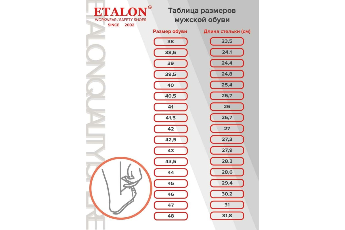ОЧень классная обувь. Смотрится как брендовая. Совсем не понятно со стороны, что она на самом деле для работы сделана. Носок с твердой вставкой. Заказал на несколько размеров больше и все равно не подошла. очень жалею... и хотя все свободно, но на носке вставка упирается в пальчик...