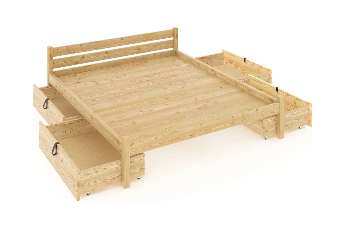 Кровать двуспальная Solarius Классика из массива сосны, со сплошным основанием, 200x160 см, габариты 210x170, с четырьмя выкатными ящиками, без покрытия 160kl-full-4yash