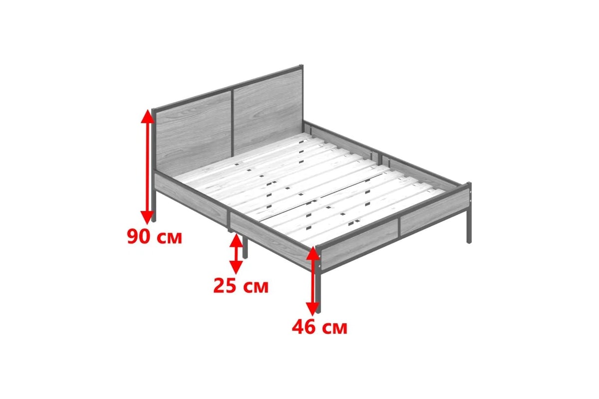 Кровать двуспальная Solarius Лофт с реечным основанием, цвет венге с черным металлическим каркасом, 140x200 см kr140loft-ven-black