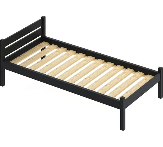 Кровать односпальная Solarius Классика из массива сосны, с реечным основанием, 190x100 см, габариты 200x110, цвет черного оникса 100klonix-190