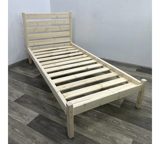 Кровать односпальная Solarius Классика из массива сосны, с реечным основанием и высокой спинкой, без покраски, 80x200 см klas-spin80