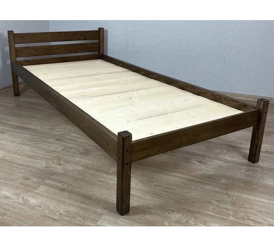 Кровать односпальная Solarius Классика из массива сосны, со сплошным основанием, 190x100 см, габариты 200x110, цвет темный дуб 100kltemd-190-full