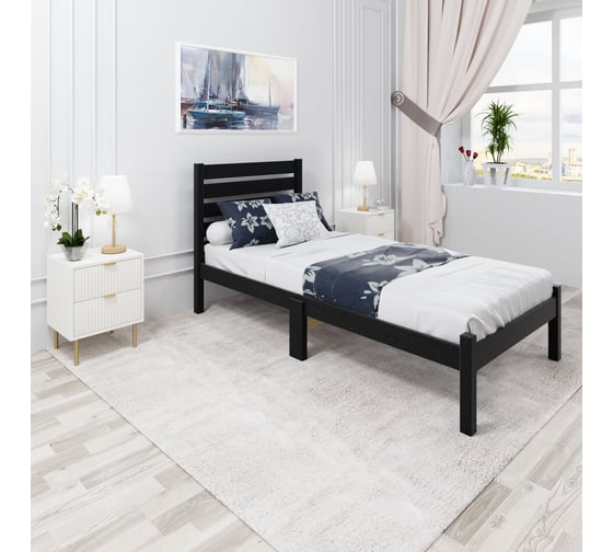 Кровать односпальная Solarius Классика Компакт с высокой спинкой, из массива сосны с реечным основанием, цвет черного оникса, 70x200 см kompakt-spin70onix