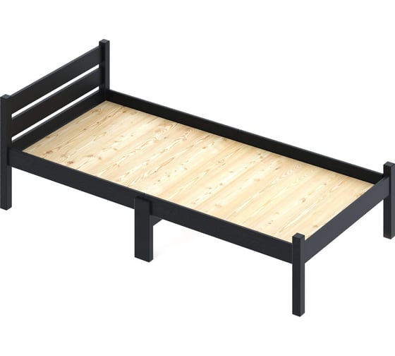 Кровать односпальная Solarius Классика Компакт сосновая, со сплошным основанием, цвет черного оникса, 100x190 см kompakt100onix-190-full