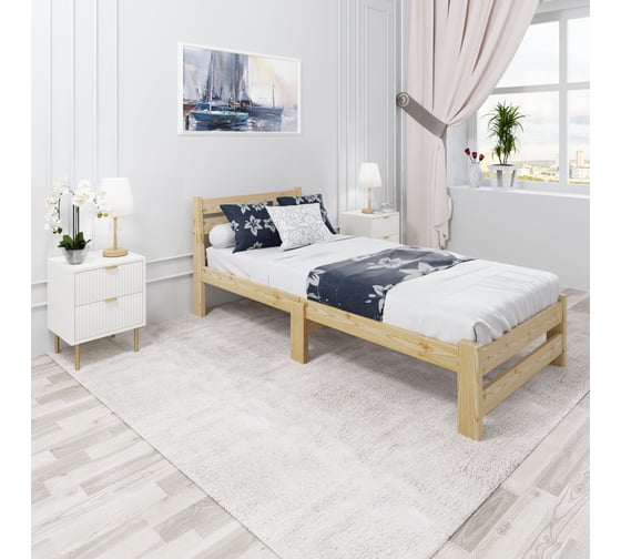 Кровать односпальная Solarius Мишка Компакт сосновая, со сплошным основанием, без покраски, 100x190 см mkompakt100-190-full