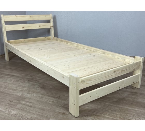 Кровать односпальная Solarius Мишка усиленная, из массива сосны, со сплошным основанием, 190x100 см, габариты 200x110, без шлифовки и покрытия 100mnet-190-full