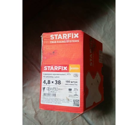 Кровельный саморез STARFIX 4.8x19 мм, цинк, шайба с прокладкой, PT1, 7000 шт. в коробе SM-83803-7000 используется для крепления металлочерепицы или другого похожего листового материала к деревянной обрешетке. Сверло на конце облегчает процесс вкручивания метиза.