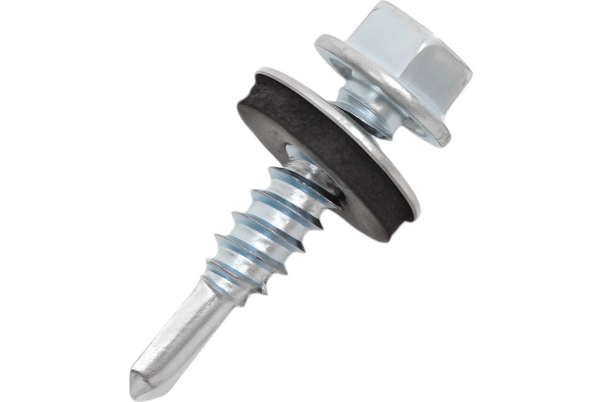 Брал для доборных элементов. Цвет под кровлю подошёл, сверло рабочее — металл проходит без проблем. Шайба прижимает плотно, резинка целая, при закручивании не выдавливает.