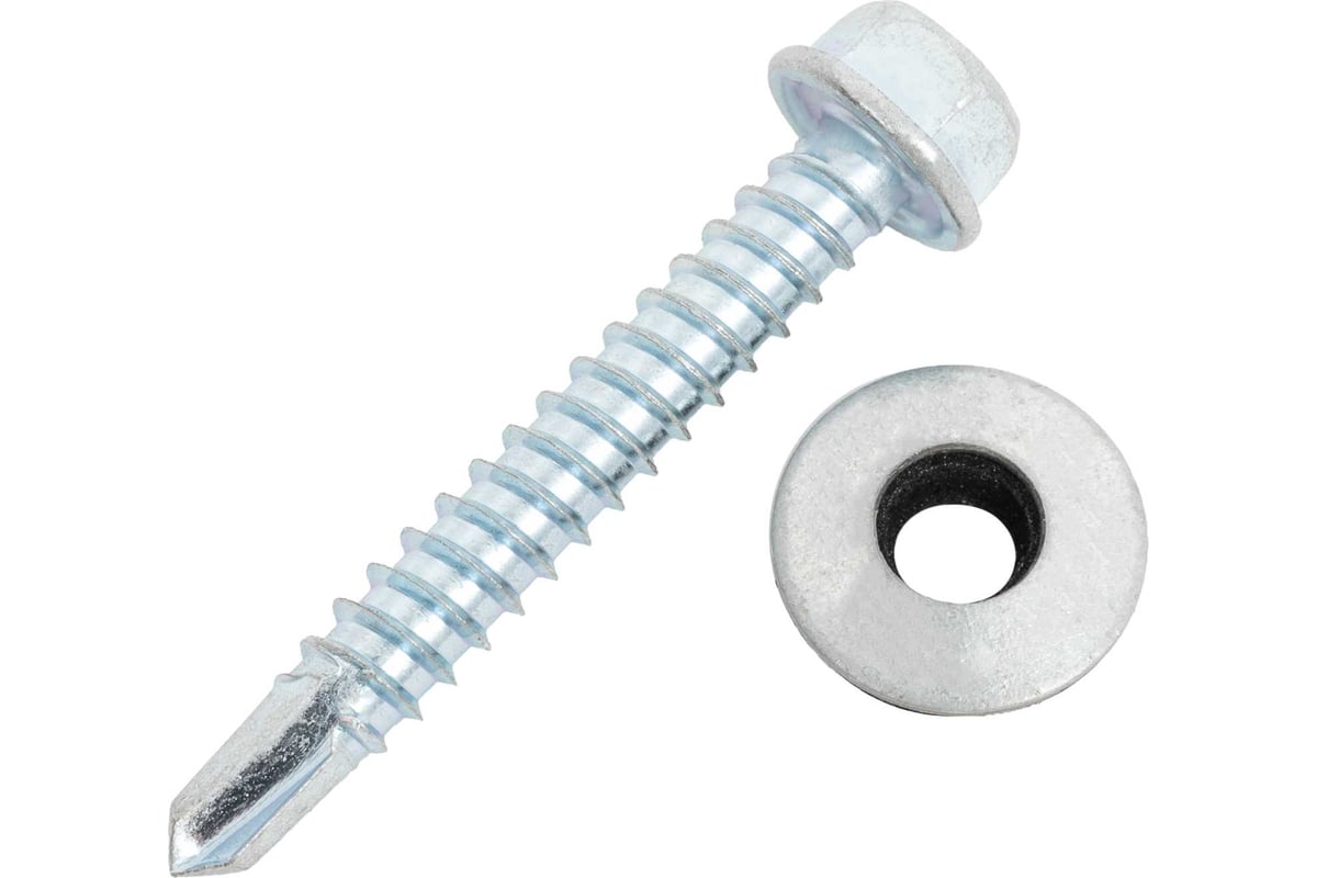 Брал для доборных элементов. Цвет под кровлю подошёл, сверло рабочее — металл проходит без проблем. Шайба прижимает плотно, резинка целая, при закручивании не выдавливает.