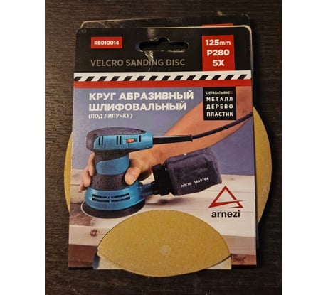 Круг абразивный (шлифовальный) ARNEZI 125 мм, P280, под липучку, 5 шт R8010014