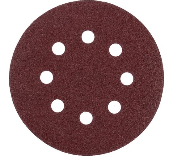 Круг абразивный шлифовальный под "липучку" , перфорированный, 125 мм, Р150, 10 шт. 2603078. Круг абразивный TUNDRA используется во время сухих шлифовально-отделочных работ по металлу, дереву, пластмассе и другим материалам. Закрепляется на шлифмашинке. Абразивная составляющая – оксид алюминия (электрокорунд).