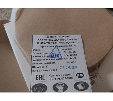 Отзывы о круге алмазном шлифовальном 1А1 (150x10x5х32 мм, 100/80, АС6 В2-01 100%) КристАл Лтд 31915